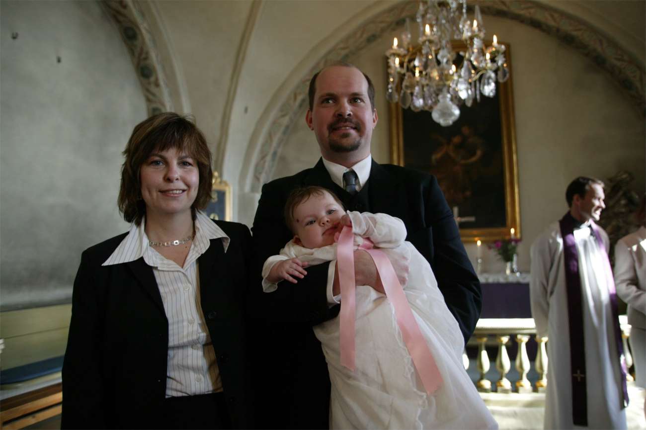 Mamma Monica, Pappa Jan och Rebecka efter dopet