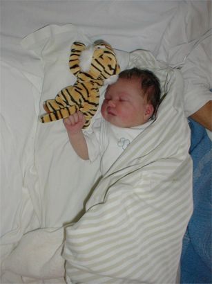 Första familjebilden. Rebecka ligger i mitten.
