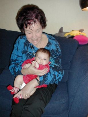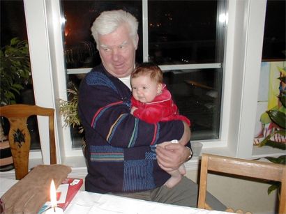 Rebecka tycker att det är kul att mysa hos morfar oxå!