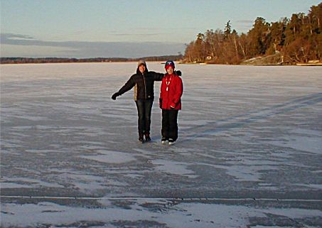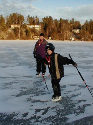 Ett i det närmaste desperat behov att röra sig uppstod efter allt ätande. Då rean ännu inte börjat så fick vi göra något mer konstruktivt, det blev skridskor på viken nedanför!!