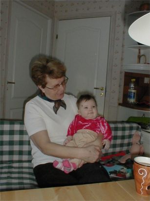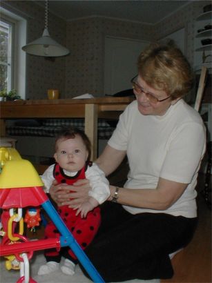 Rebecka och farmor leker massor.