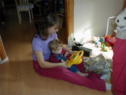 Rebecka och faster Annika kollar på ratten