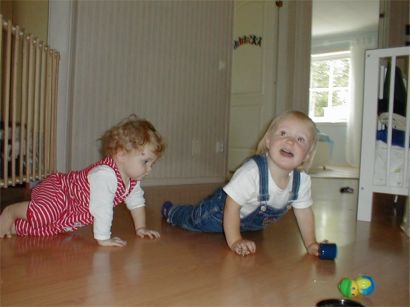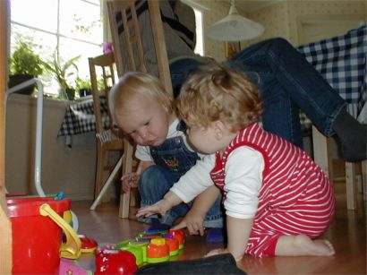 Rebecka och Lovisa spanar leksaker.