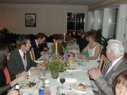 Middagen intogs hemma hos Monica och Jan. Vi hade långbord för 20 personer i vardagsrummet.