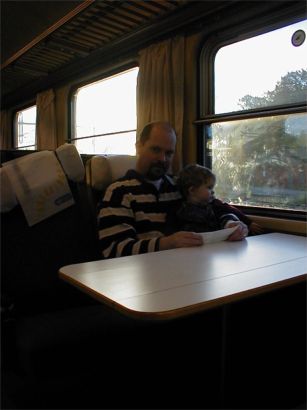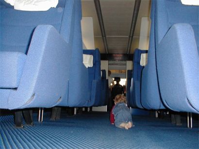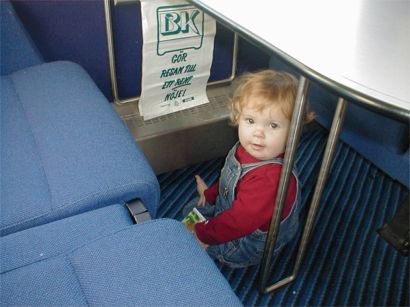 Det fanns lekutrymme men Rebecka tyckte att hela tåget var ett lekutrymme.
