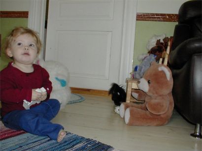 Rebecka hälsade på alla nallar hemma hos farmor.