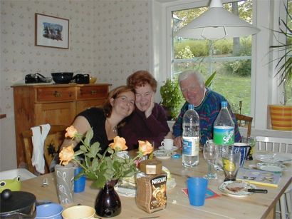 Monica med mormor och morfar som var med och firade.