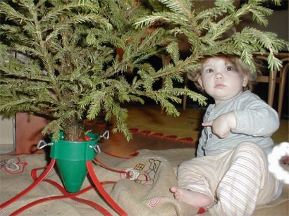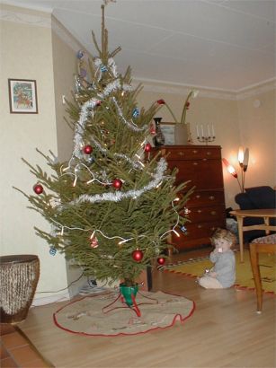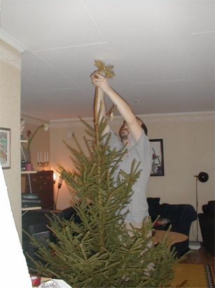 Rebecka hjälper till med granen. Till vår oerhörda förvåning så lät hon granen vara relativt bra.