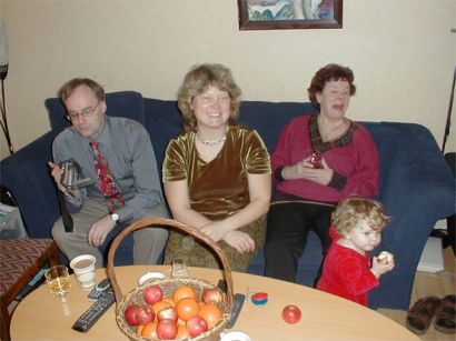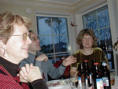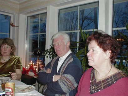 Nu börjar vi vänta på julklappar. Alla har lite värmande i glasen.
