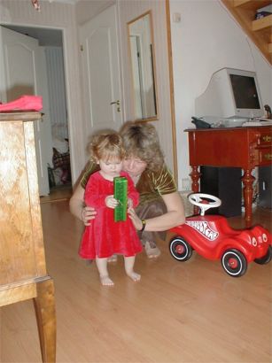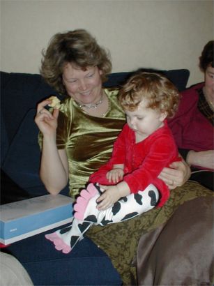 Rebecka och faster Annika, Rebecka provar faster Annikas nya sockor.