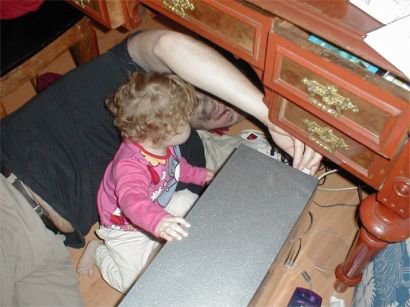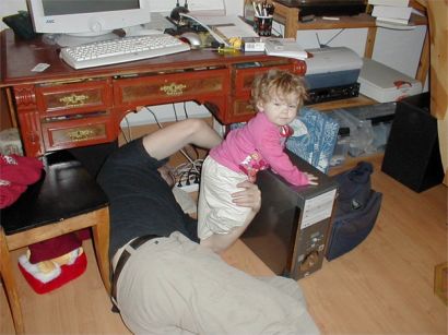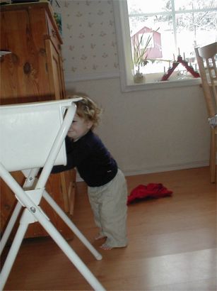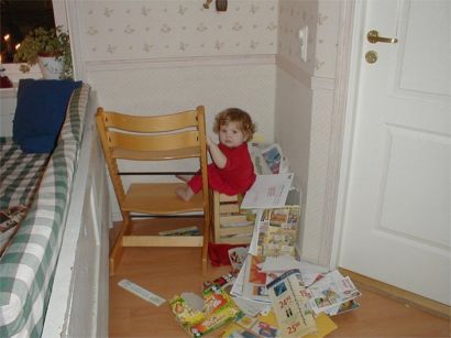 Varför står denna stol här. (Placerad där för att Rebecka inte skulle klättra i den. Hon rev ut hela pappersinsamlingen för att komma åt den)